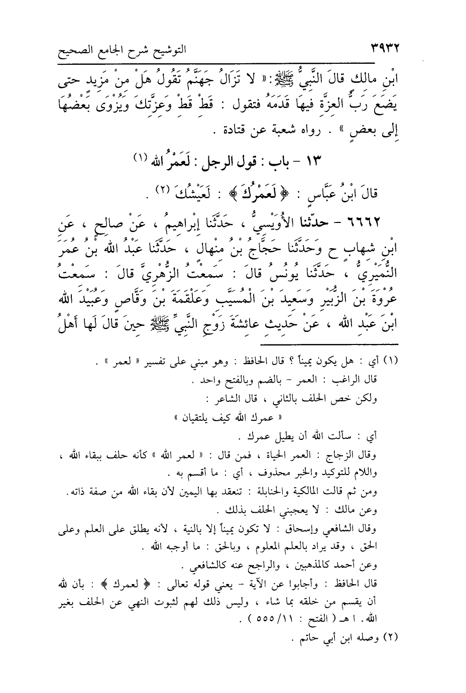13 - بَابُ قَوْلِ الرَّجُلِ: لَعَمْرُ اللَّهِ