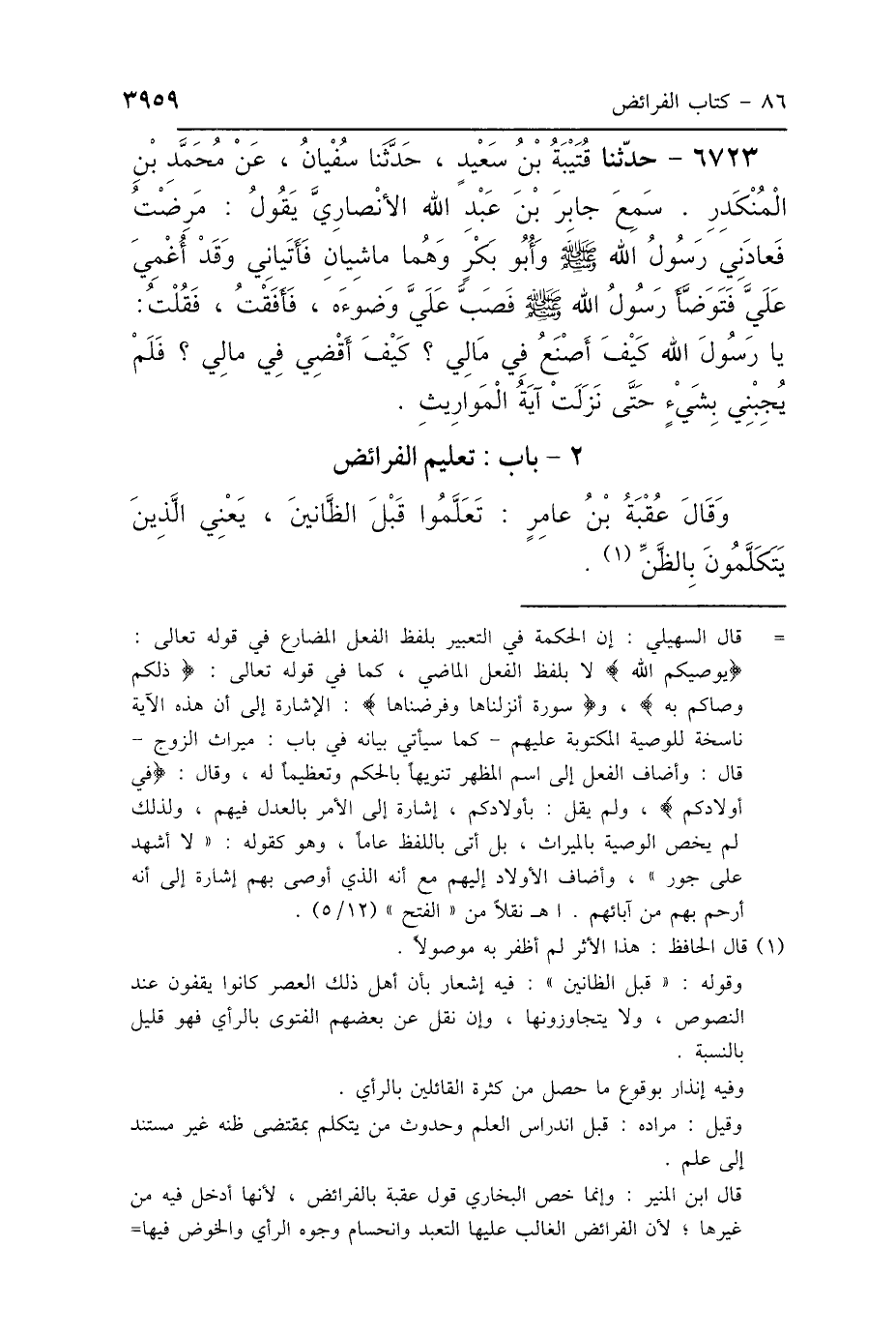 2 - بَابُ تَعْلِيمِ الفَرَائِضِ