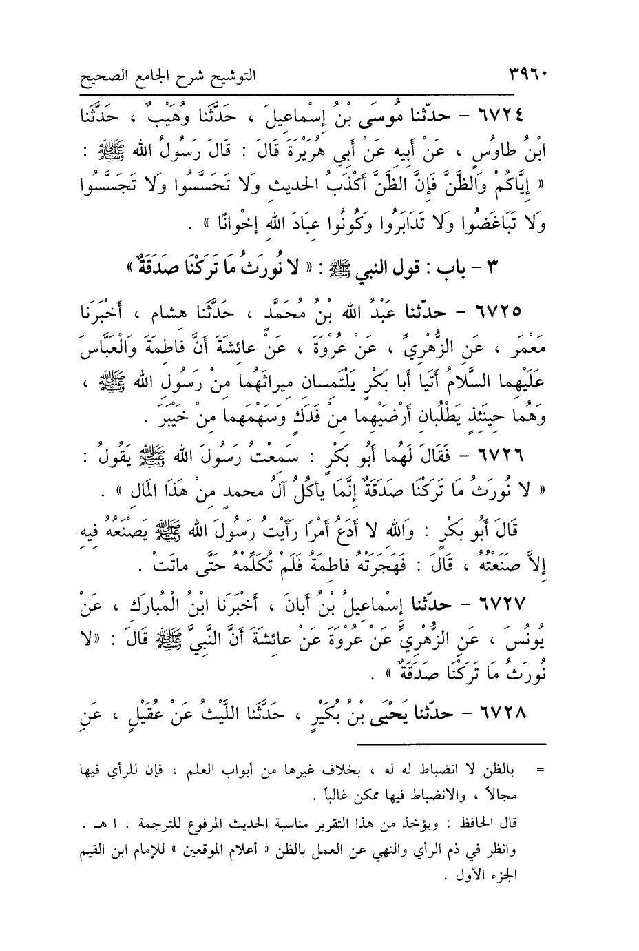 3 - بَابُ قَوْلِ النَّبِيِّ صَلَّى اللهُ عَلَيْهِ وَسَلَّمَ: «لاَ نُورَثُ مَا تَرَكْنَا صَدَقَةٌ»
