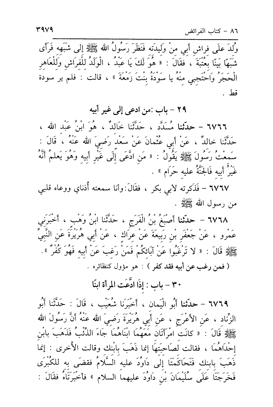 29 - بَابُ مَنِ ادَّعَى إِلَى غَيْرِ أَبِيهِ