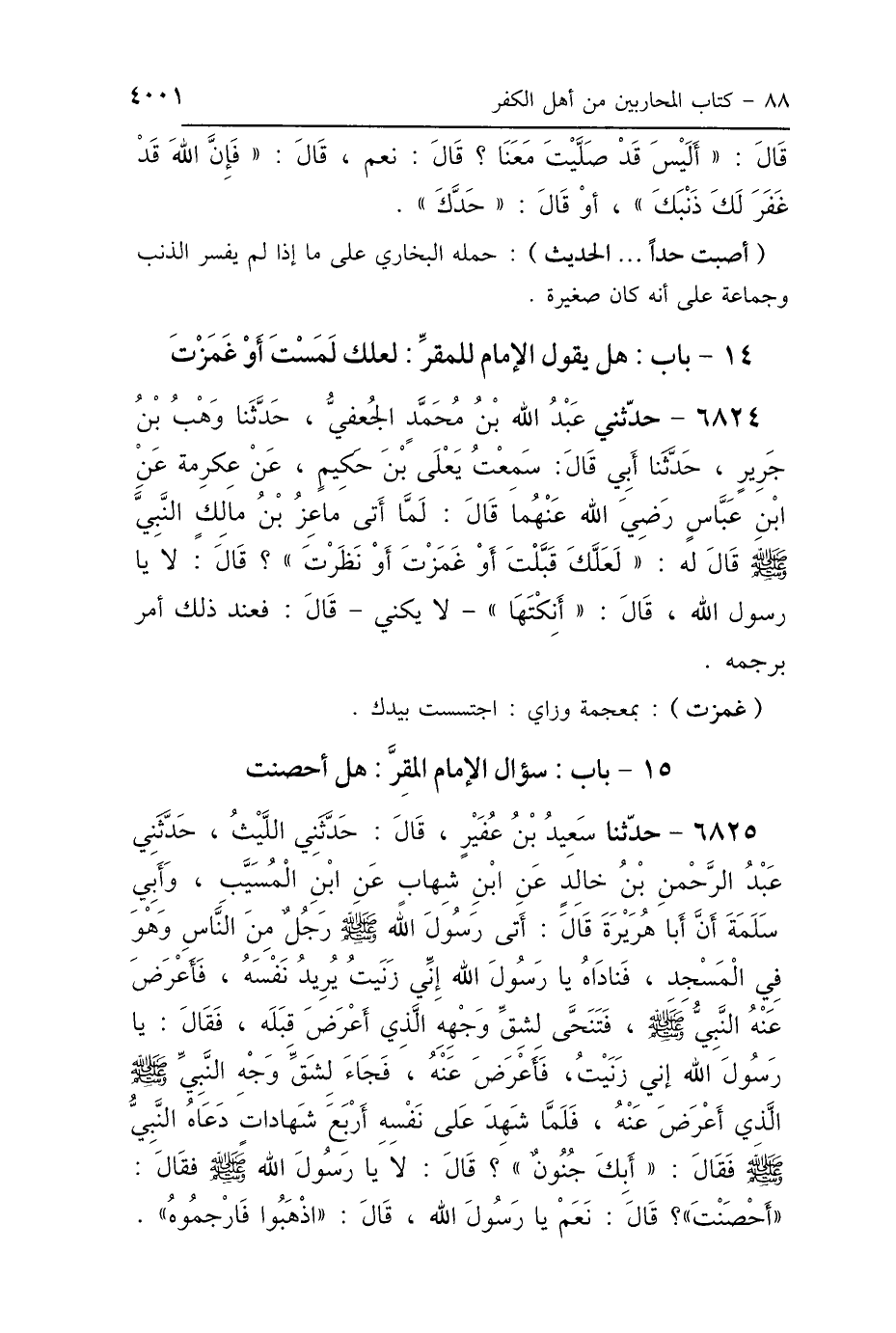 14 - بَابٌ: هَلْ يَقُولُ الإِمَامُ لِلْمُقِرِّ: لَعَلَّكَ لَمَسْتَ أَوْ غَمَزْتَ