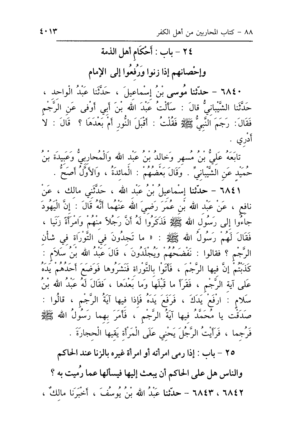 24 - بَابُ أَحْكَامِ أَهْلِ الذِّمَّةِ وَإِحْصَانِهِمْ، إِذَا زَنَوْا وَرُفِعُوا إِلَى الإِمَامِ
