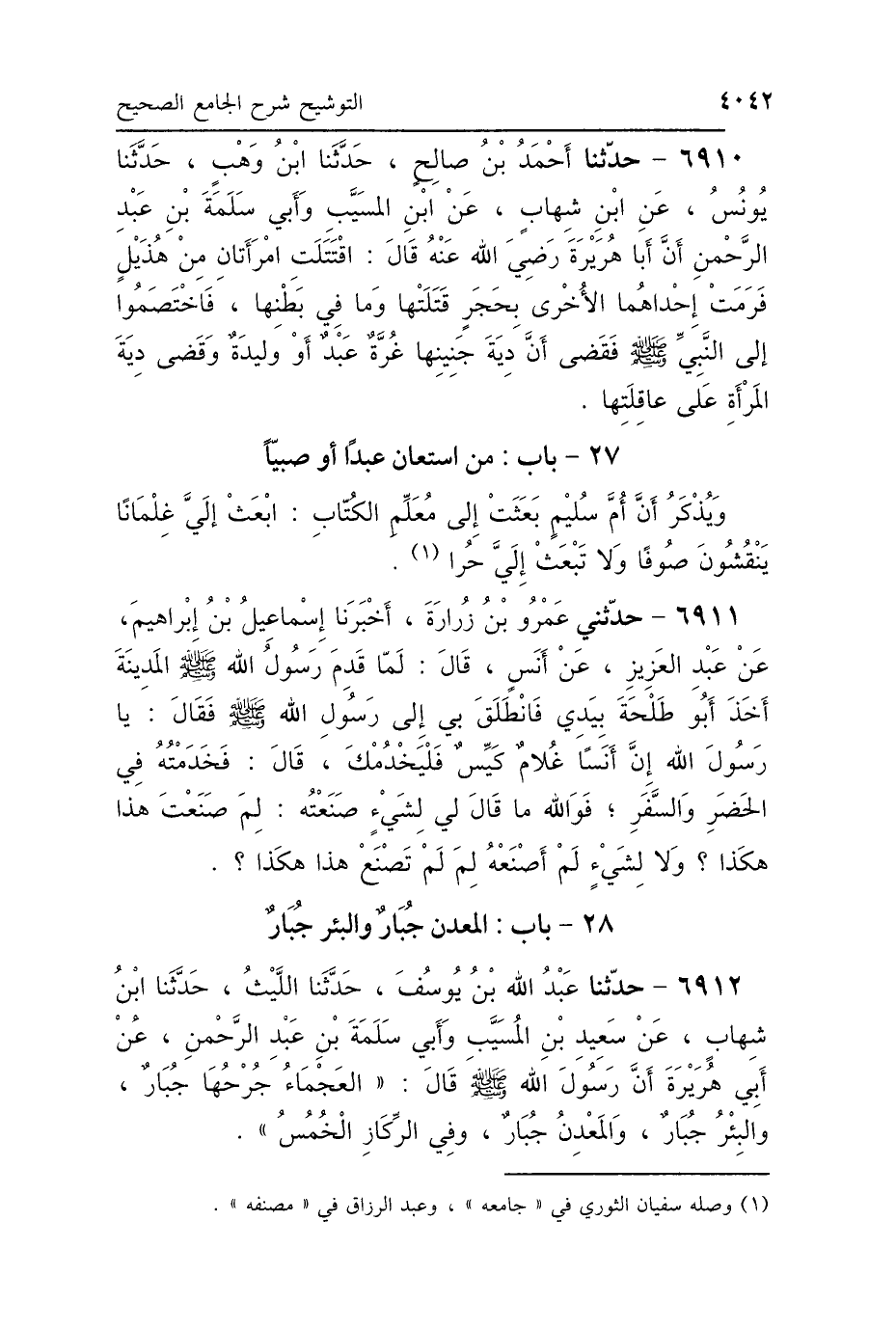 28 - بَابٌ: المَعْدِنُ جُبَارٌ وَالبِئْرُ جُبَارٌ