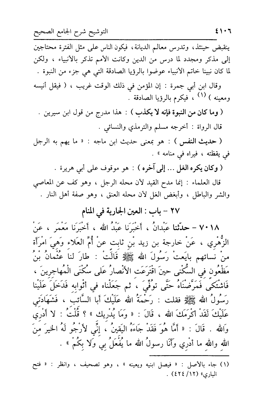 (وما كان من النبوة فإنَّه لا يكذب): هذا مدرج من قول ابن سيرين.