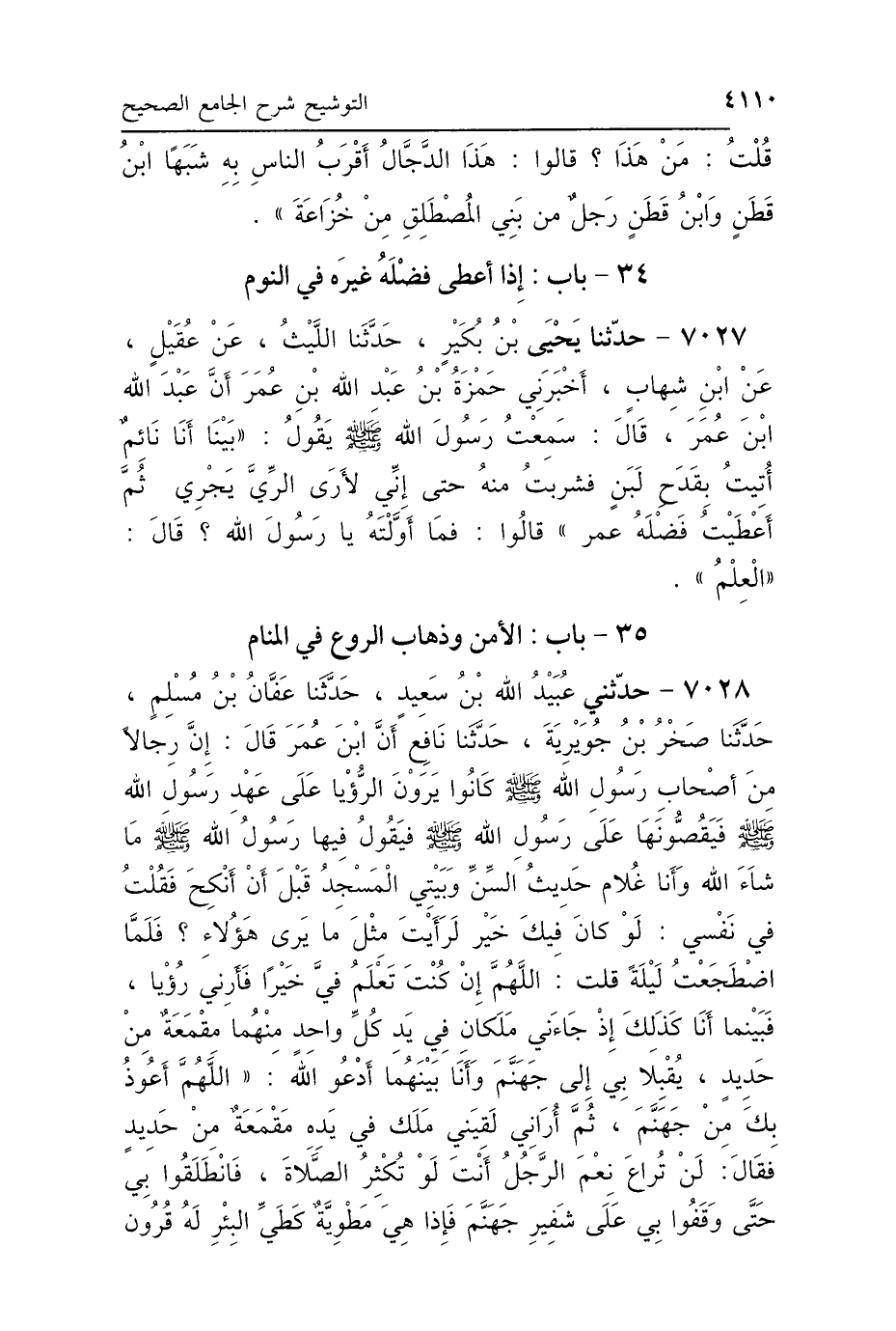 35 - بَابُ الأَمْنِ وَذَهَابِ الرَّوْعِ فِي المَنَامِ