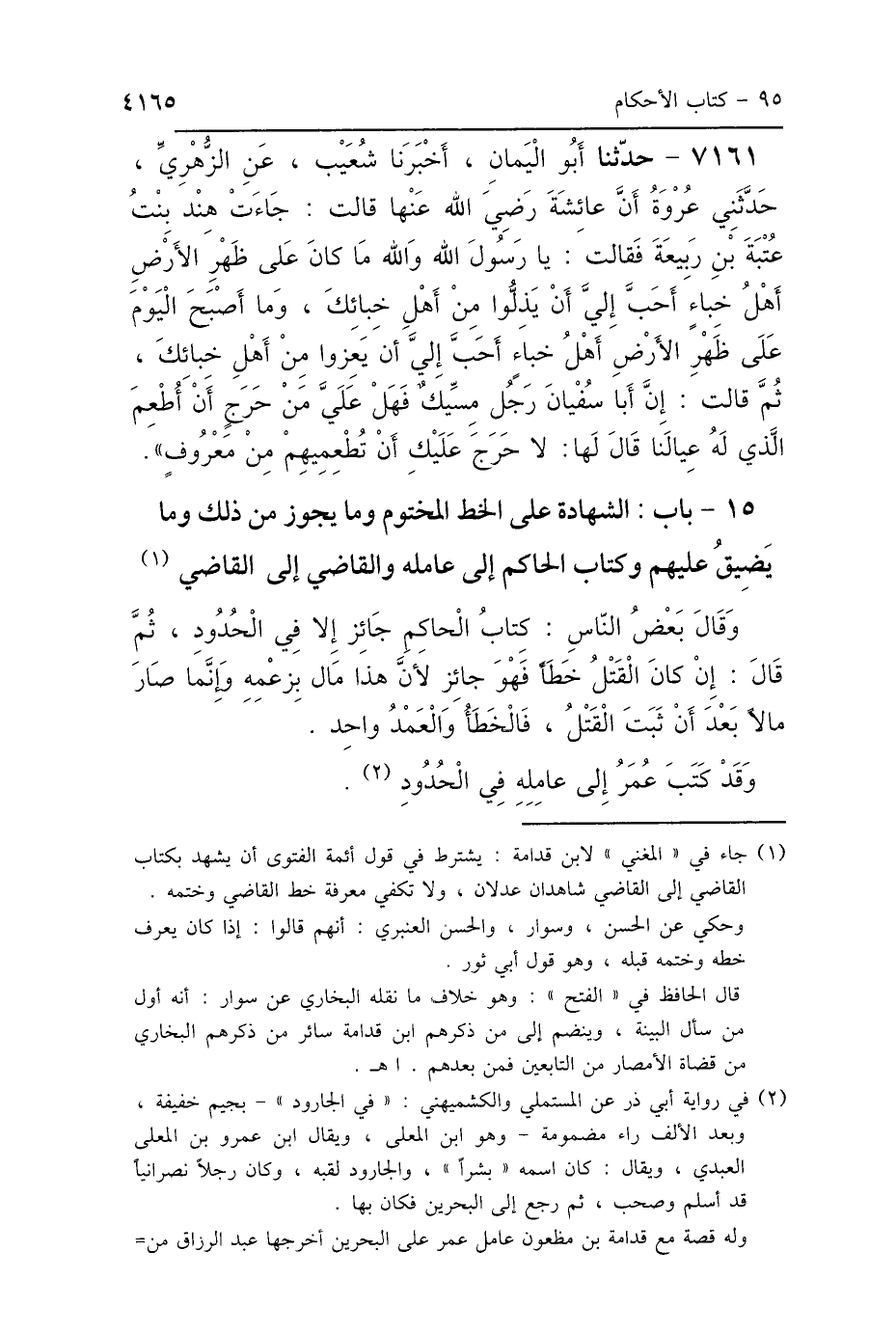 وَقَالَ بَعْضُ النَّاسِ: كِتَابُ الحَاكِمِ جَائِزٌ إِلَّا فِي الحُدُودِ، ثُمَّ قَالَ: إِنْ كَانَ القَتْلُ خَطَأً فَهُوَ جَائِزٌ، لِأَنَّ هَذَا مَالٌ بِزَعْمِهِ، وَإِنَّمَا صَارَ مَالًا بَعْدَ أَنْ ثَبَتَ القَتْلُ، فَالخَطَأُ وَالعَمْدُ وَاحِدٌ وَقَدْ كَتَبَ عُمَرُ إِلَى عَامِلِهِ فِي الجَارُودِ.
