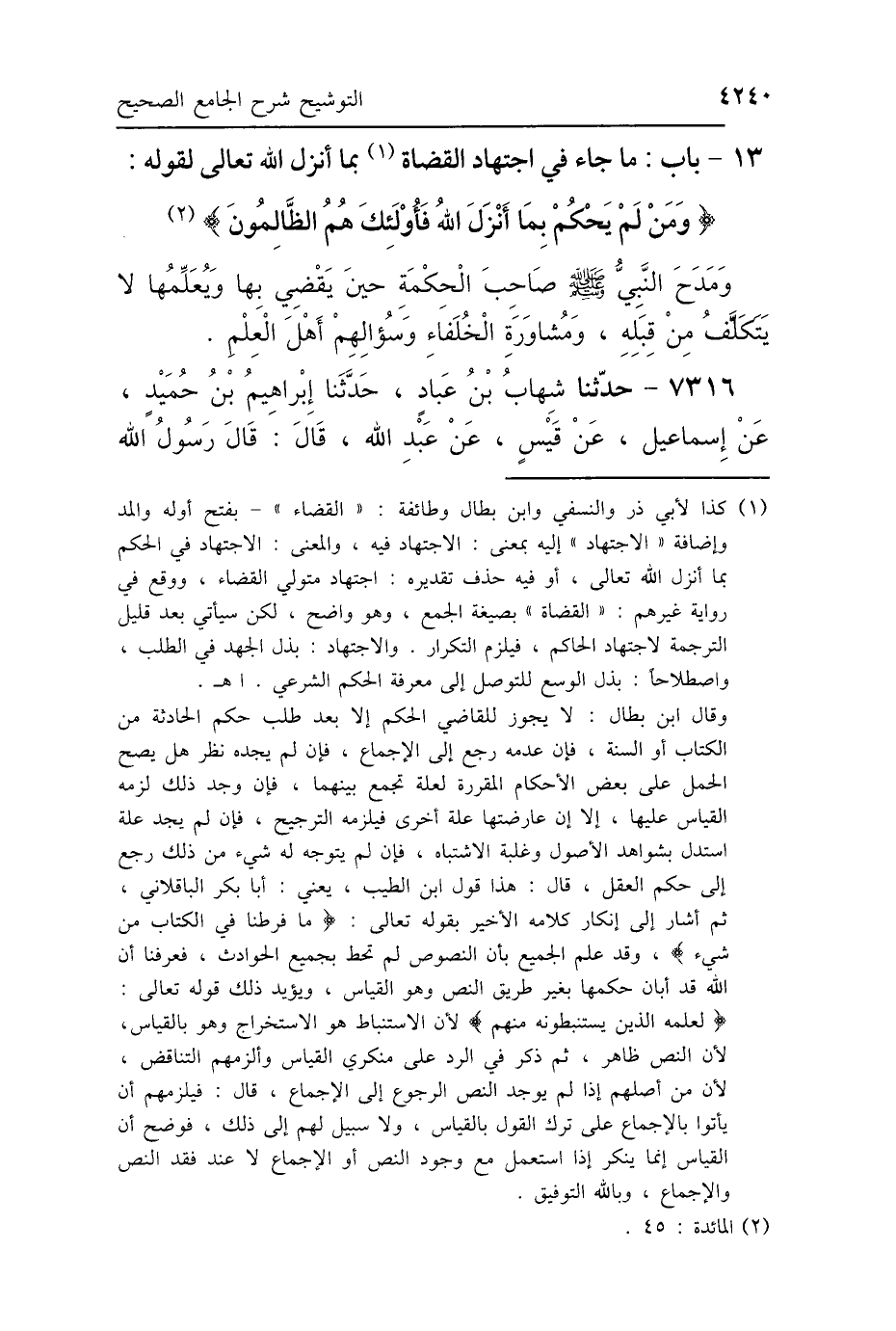 13 - بَابُ مَا جَاءَ فِي اجْتِهَادِ القُضَاةِ بِمَا أَنْزَلَ اللَّهُ تَعَالَى لِقَوْلِهِ: {وَمَنْ لَمْ يَحْكُمْ بِمَا أَنْزَلَ اللَّهُ فَأُولَئِكَ هُمُ الظَّالِمُونَ} [المائدة: 45]