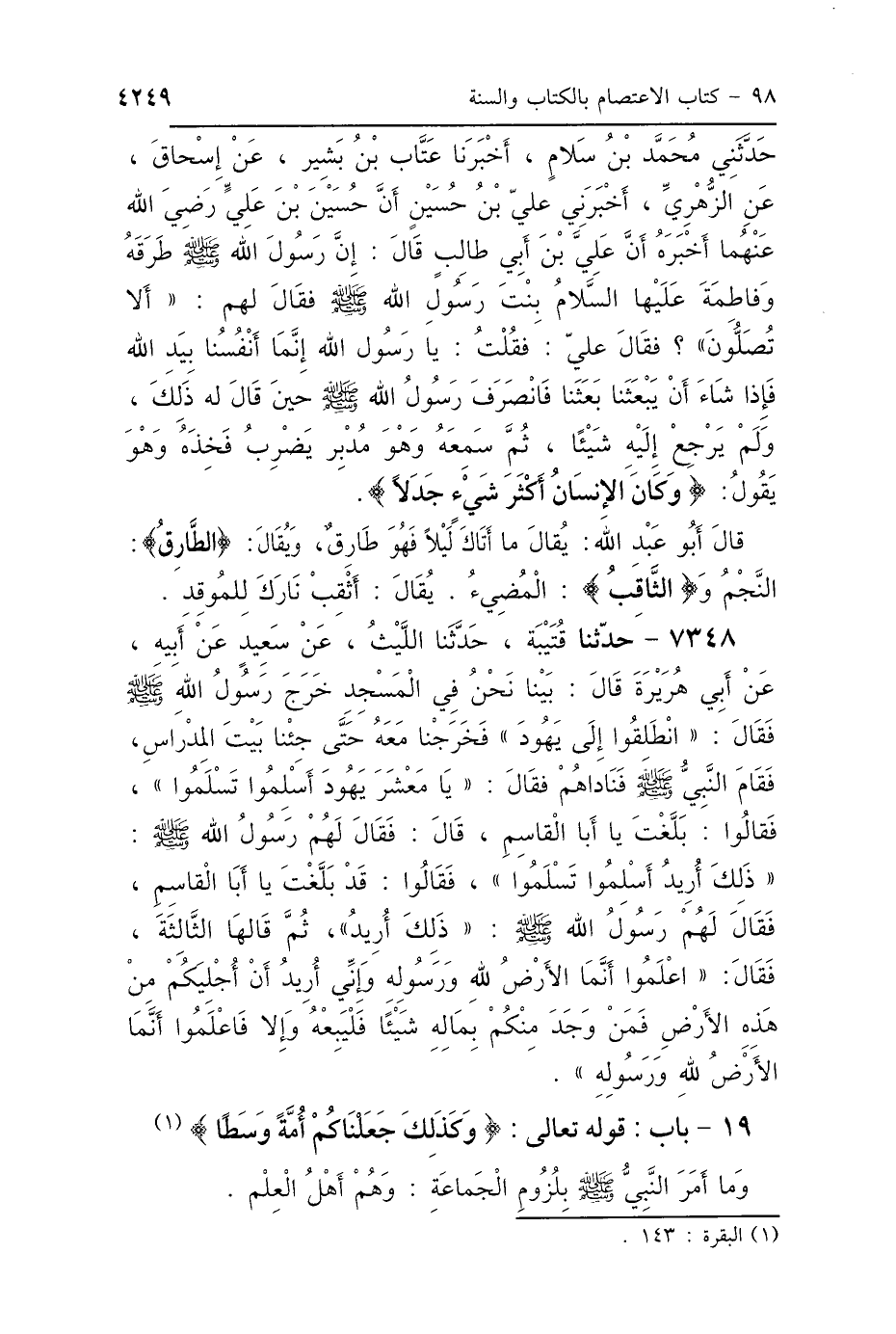 19 - بَابُ قَوْلِهِ تَعَالَى: {وَكَذَلِكَ جَعَلْنَاكُمْ أُمَّةً وَسَطًا} [البقرة: 143]
