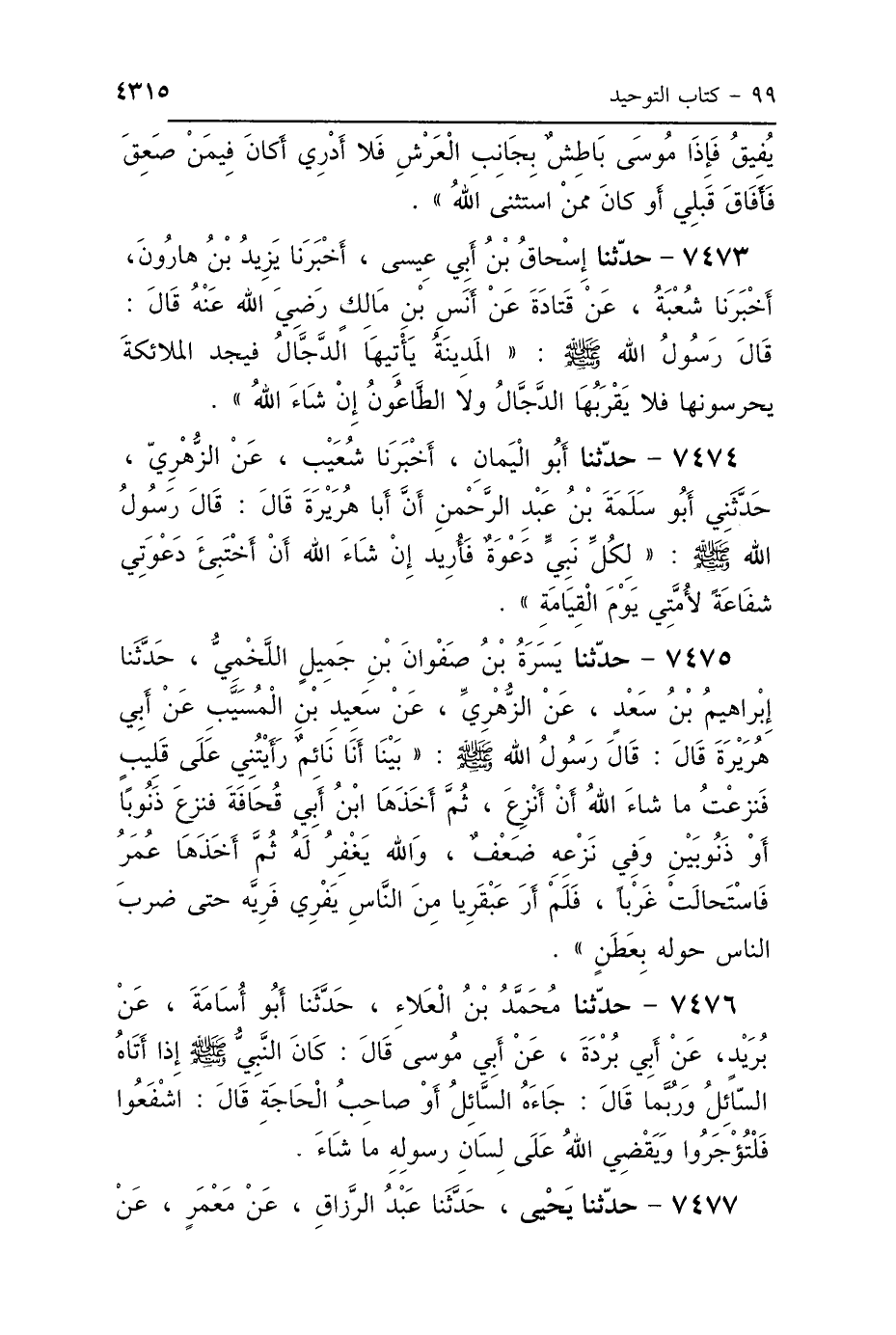 7477 - حَدَّثَنَا يَحْيَى، حَدَّثَنَا عَبْدُ الرَّزَّاقِ، عَنْ مَعْمَرٍ، عَنْ