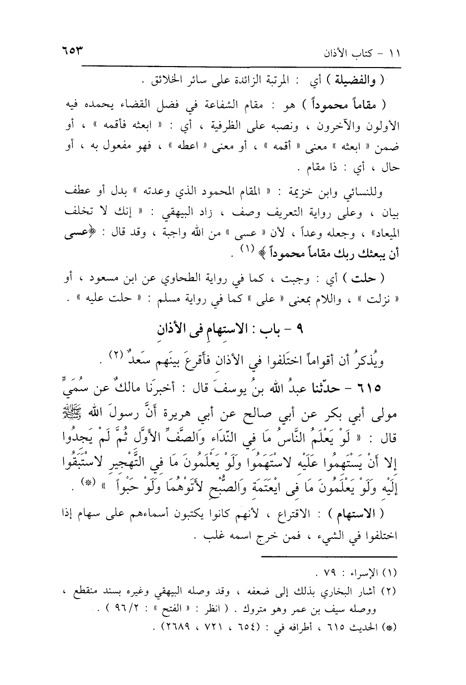 (مقامًا محمودًا) هو: مقام الشفاعة في فضل القضاء يحمده فيه الأولون والآخرون، ونصبه على الظرفية، أي: "ابعثه فأقمه"، أو ضمن "ابعثه" معنى "أقمه"، أو معنى "اعطه"، فهو مفعول به، أو حال، أي: ذا مقام.