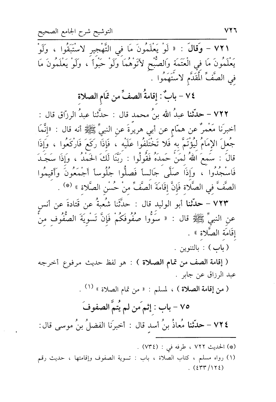 74 - بَابٌ: إِقَامَةُ الصَّفِّ مِنْ تَمَامِ الصَّلاَةِ