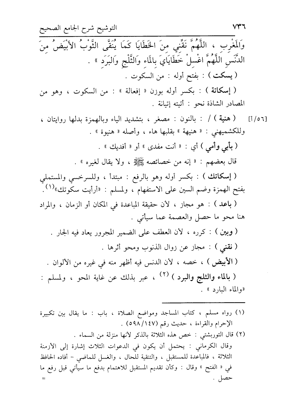 (بالماء والثلج والبرد)، عبر بذلك عن غاية المحو، ولمسلم: "والماء البارد".