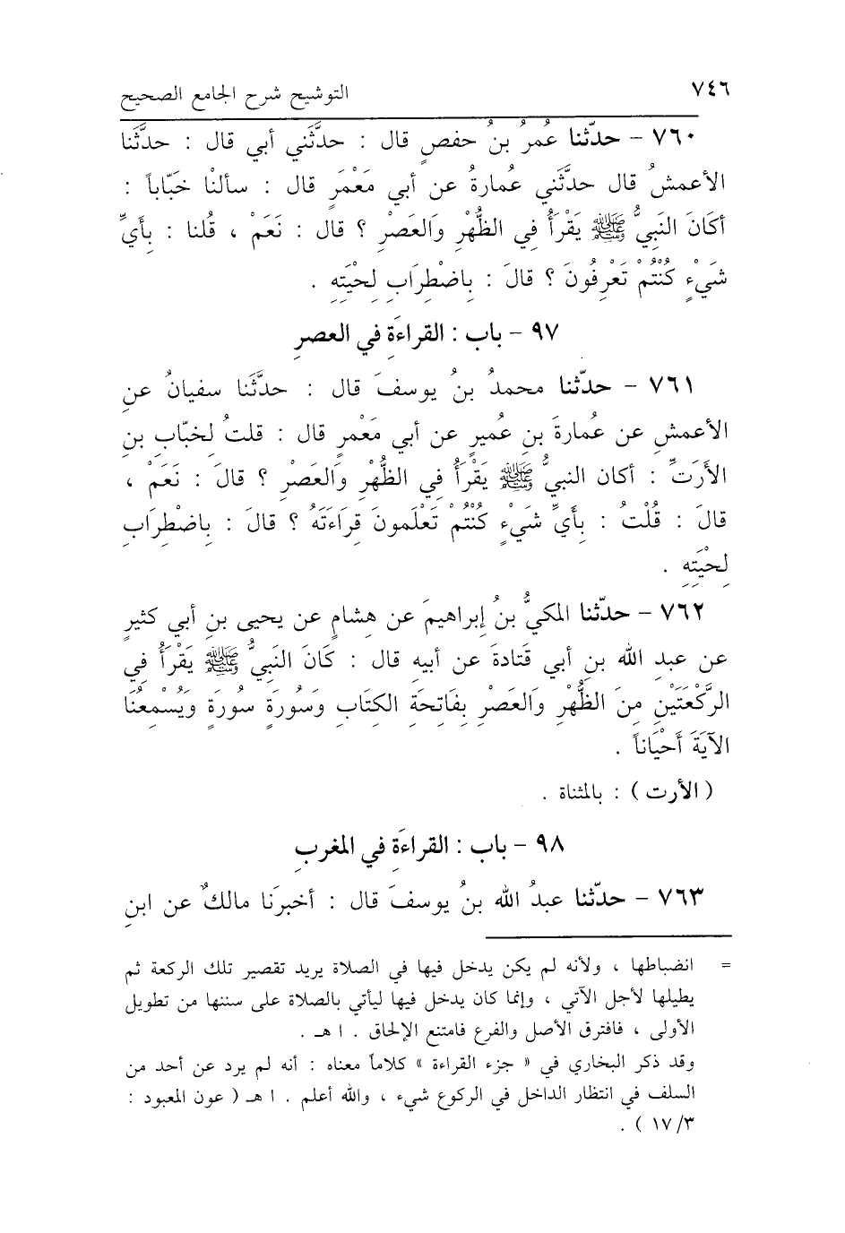 97 - بَابُ القِرَاءَةِ فِي العَصْرِ