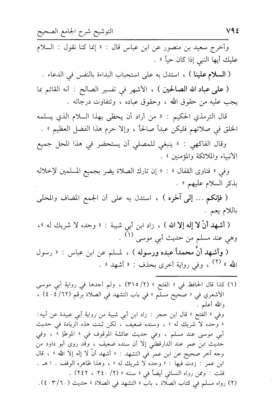 قال التِّرمذيُّ الحكيم: "من أراد أن يحظى بهذا السَّلام الذي يسلمه الخلق في صلاتهم فليكن عبدًا صالحًا، وإلا حرم هذا الفضل العظيم".