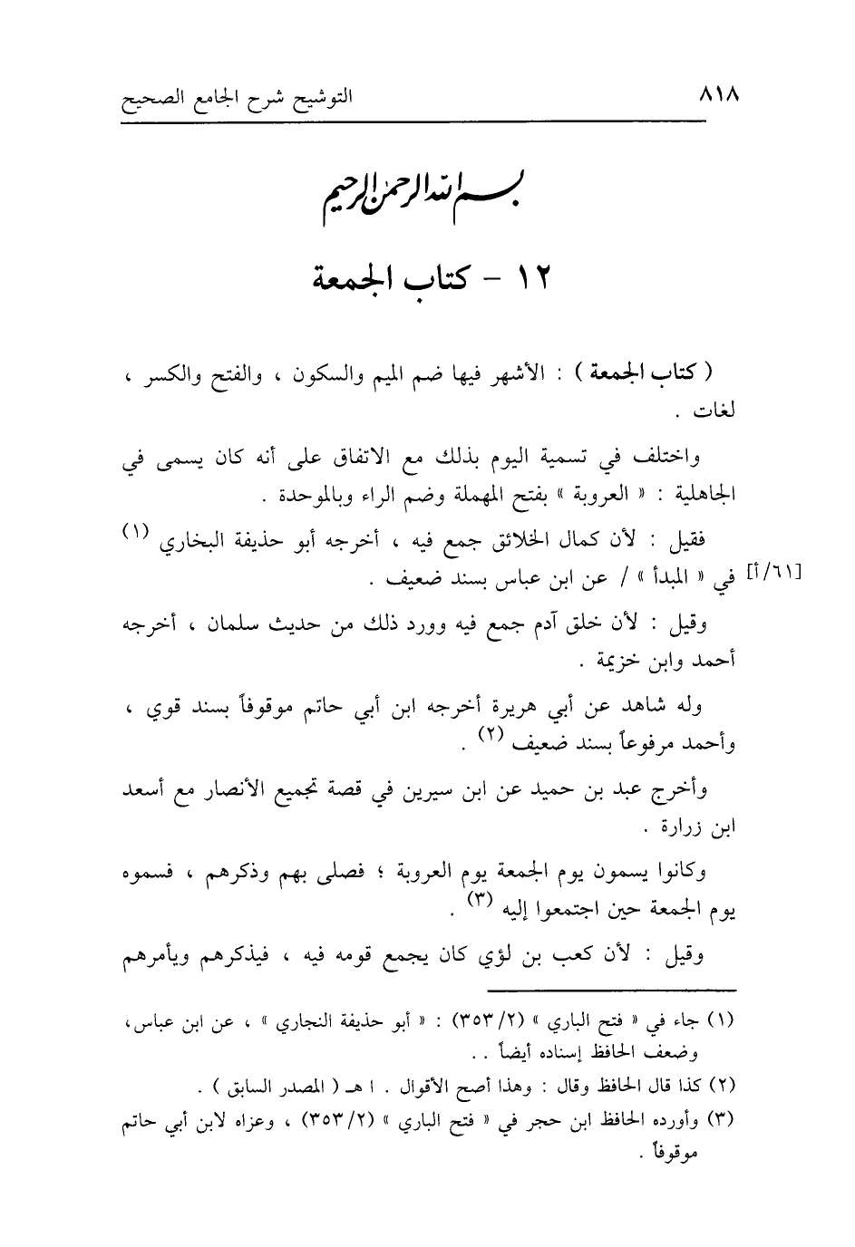 (كتاب الجمعة): الأشهر فيها ضم الميم والسكون، والفتح والكسر، لغات.