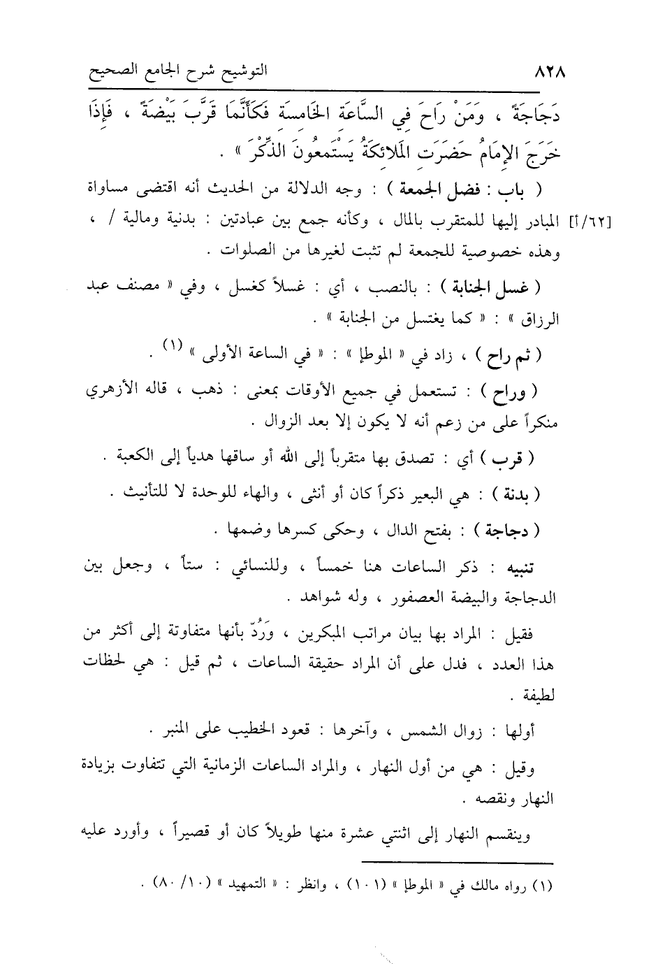 (ثم راح)، زاد في "الموطإ": "في الساعة الأولى" (1).