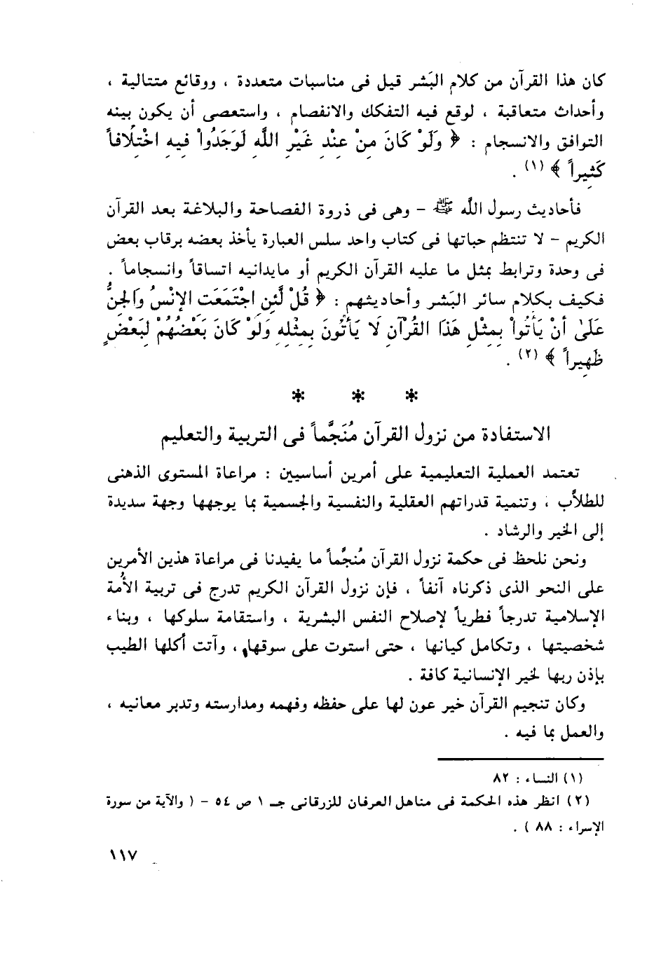 2 انظر هذه الحكمة في مناهل العرفان للزرقاني جـ1 ص54 [والآية من سورة الإسراء: 88] .
