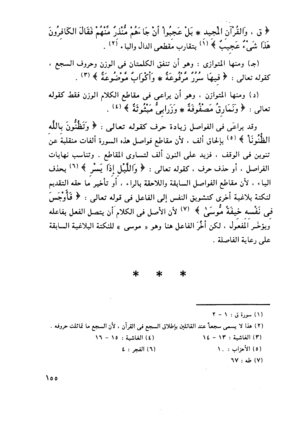 2 هذا لا يسمى سجعًا عند القائلين بإطلاق السجع في القرآن، لأن السجع ما تماثلت حروفه.