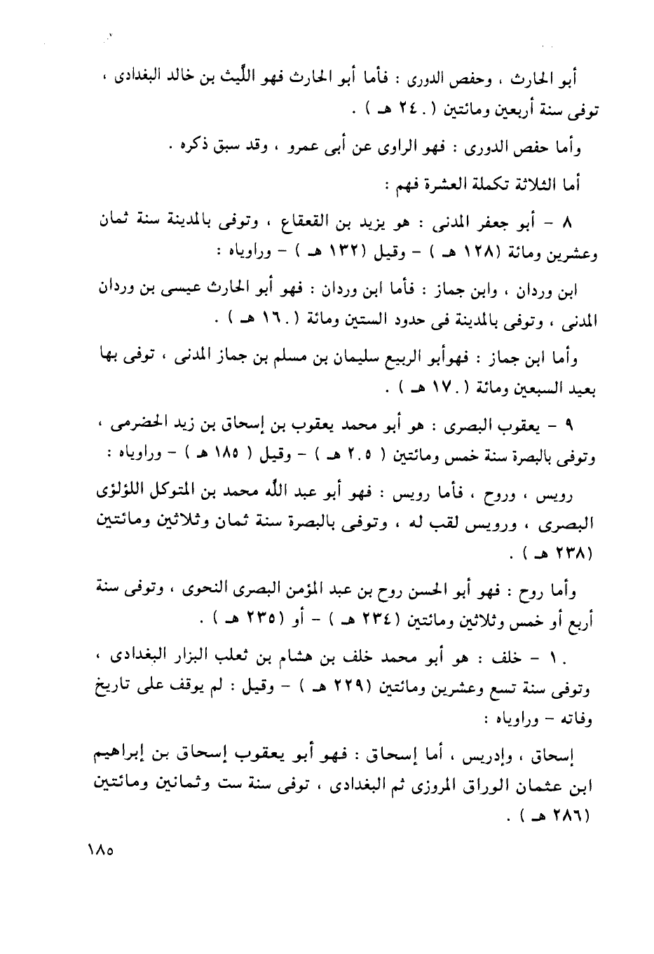 9- يعقوب البصري: هو أبو محمد يعقوب بن إسحاق بن زيد الحضرمي، وتوفي بالبصرة سنة خمس ومائتين "205هـ" - وقيل "185هـ" - وراوياه:
