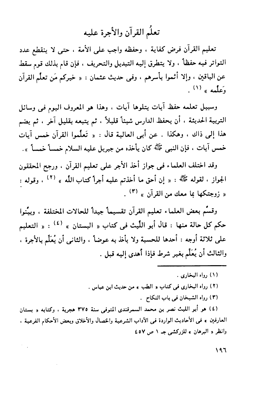4 هو أبو الليث نصر بن محمد السمرقندي المتوفى سنة 375 هجرية، وكتابه "بستان العارفين" في الأحاديث الواردة في الآداب الشرعية والخصال والأخلاق وبعض الأحكام الفرعية، وانظر "البرهان" للزركشي جـ1 ص457.