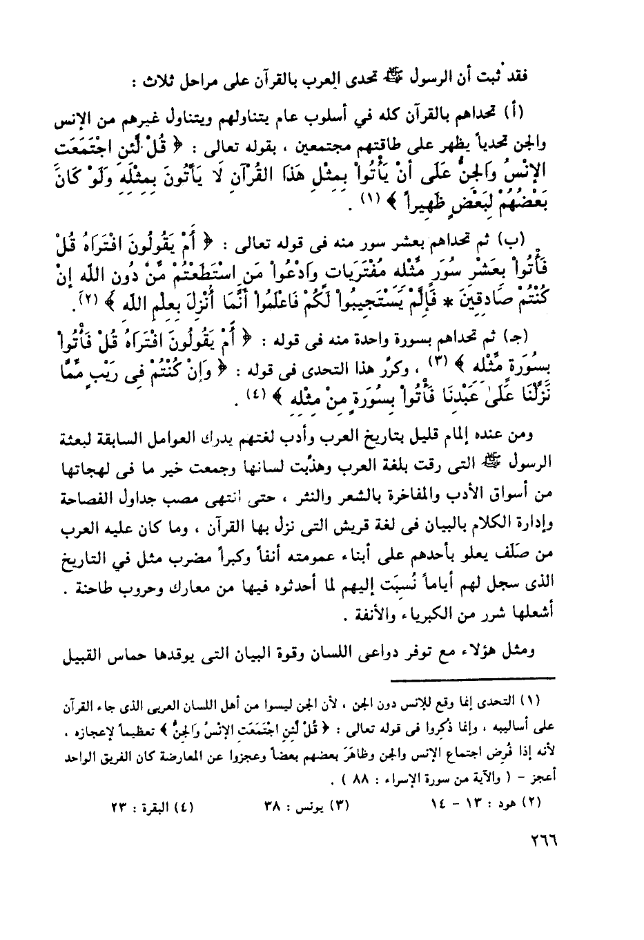 فقد ثبت أن الرسول -صلى الله عليه وسلم- تحدى العرب بالقرآن على مراحل ثلاث: