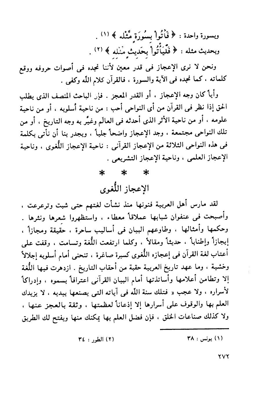 ونحن لا نرى الإعجاز في قدر معين؛ لأننا نجده في أصوات حروفه ووقع كلماته، كما نجده في الآية والسورة، فالقرآن كلام الله وكفى.