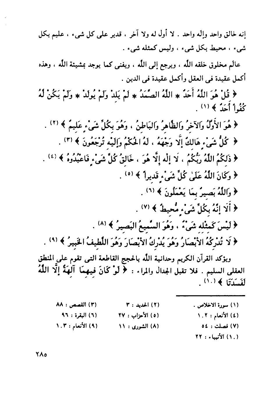 {قُلْ هُوَ اللَّهُ أَحَدٌ اللَّهُ الصَّمَدُ لَمْ يَلِدْ وَلَمْ يُولَدْ وَلَمْ يَكُنْ لَهُ كُفُواً أَحَدٌ} 1.