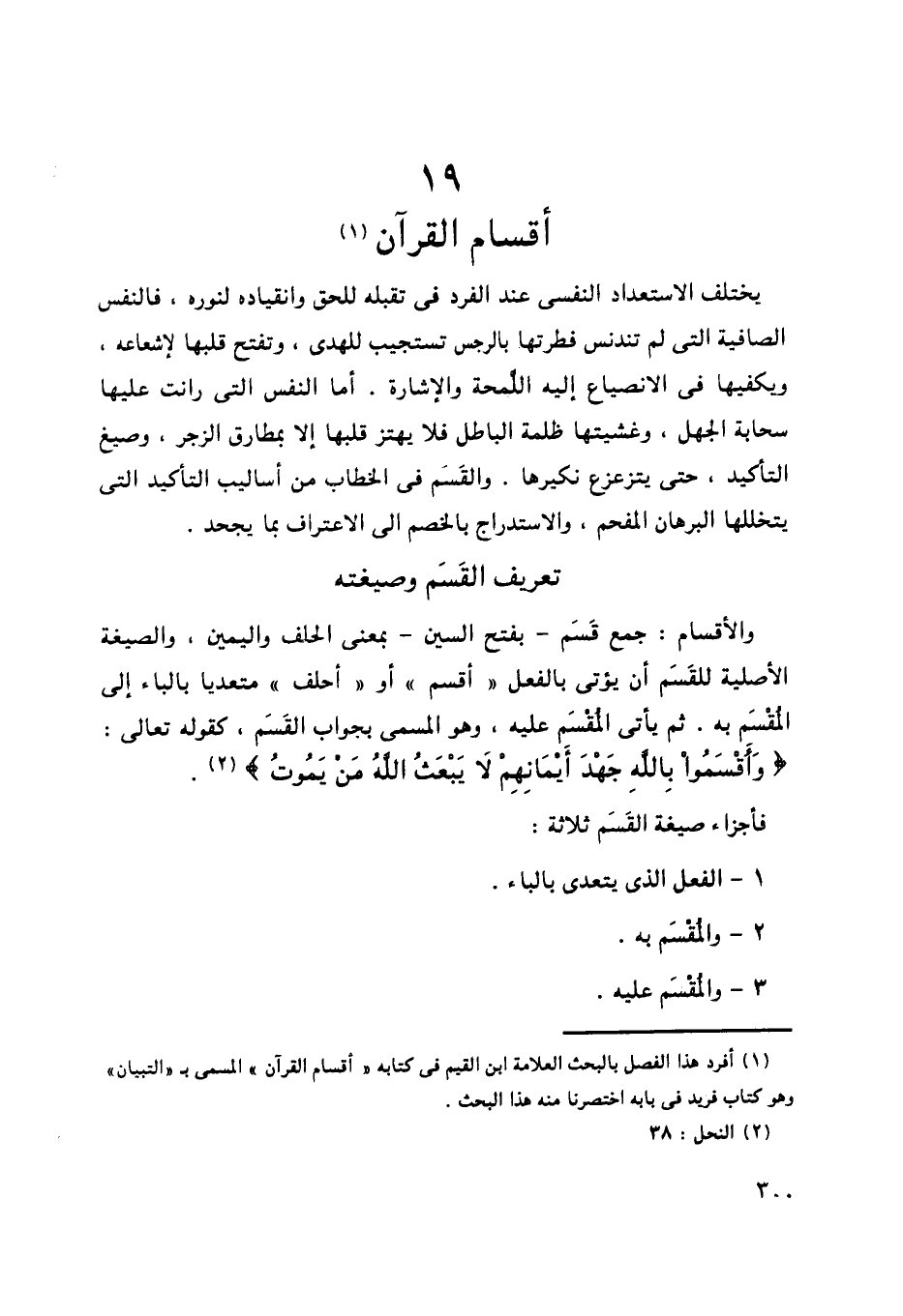 1 أفرد هذا الفصل بالبحث العلامة ابن القيم في كتابه "أقسام القرآن" المسمى بـ "التبيان" وهو كتاب فريد في بابه اختصرنا منه هذا البحث.