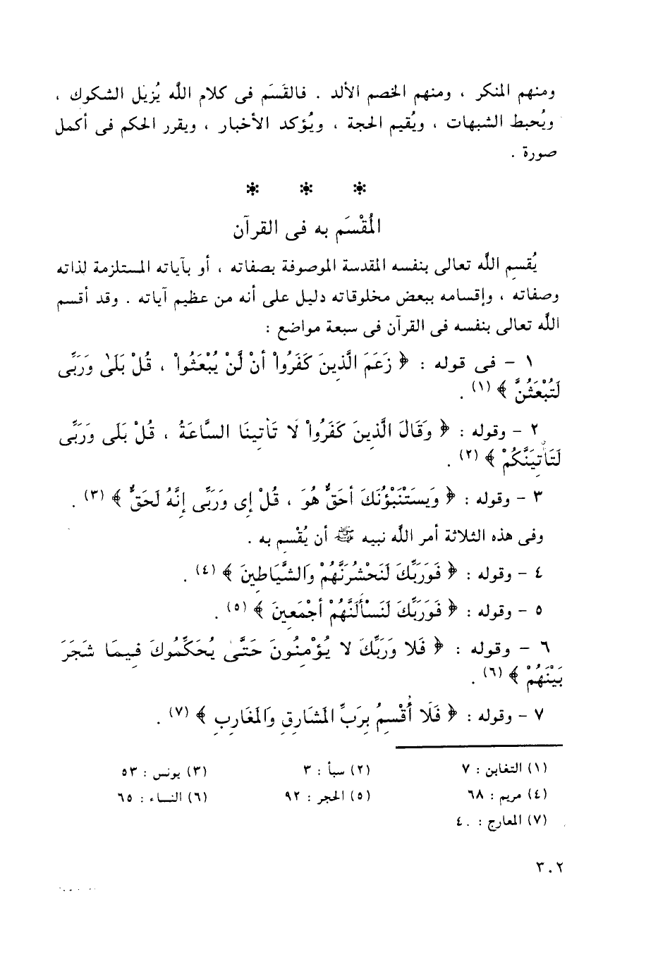 ومنهم المنكر، ومنهم الخصم الألد. فالقسم في كلام الله يزيل الشكوك، ويحبط الشبهات، ويقيم الحجة، ويؤكد الأخبار، ويقرر الحكم في أكمل صورة.