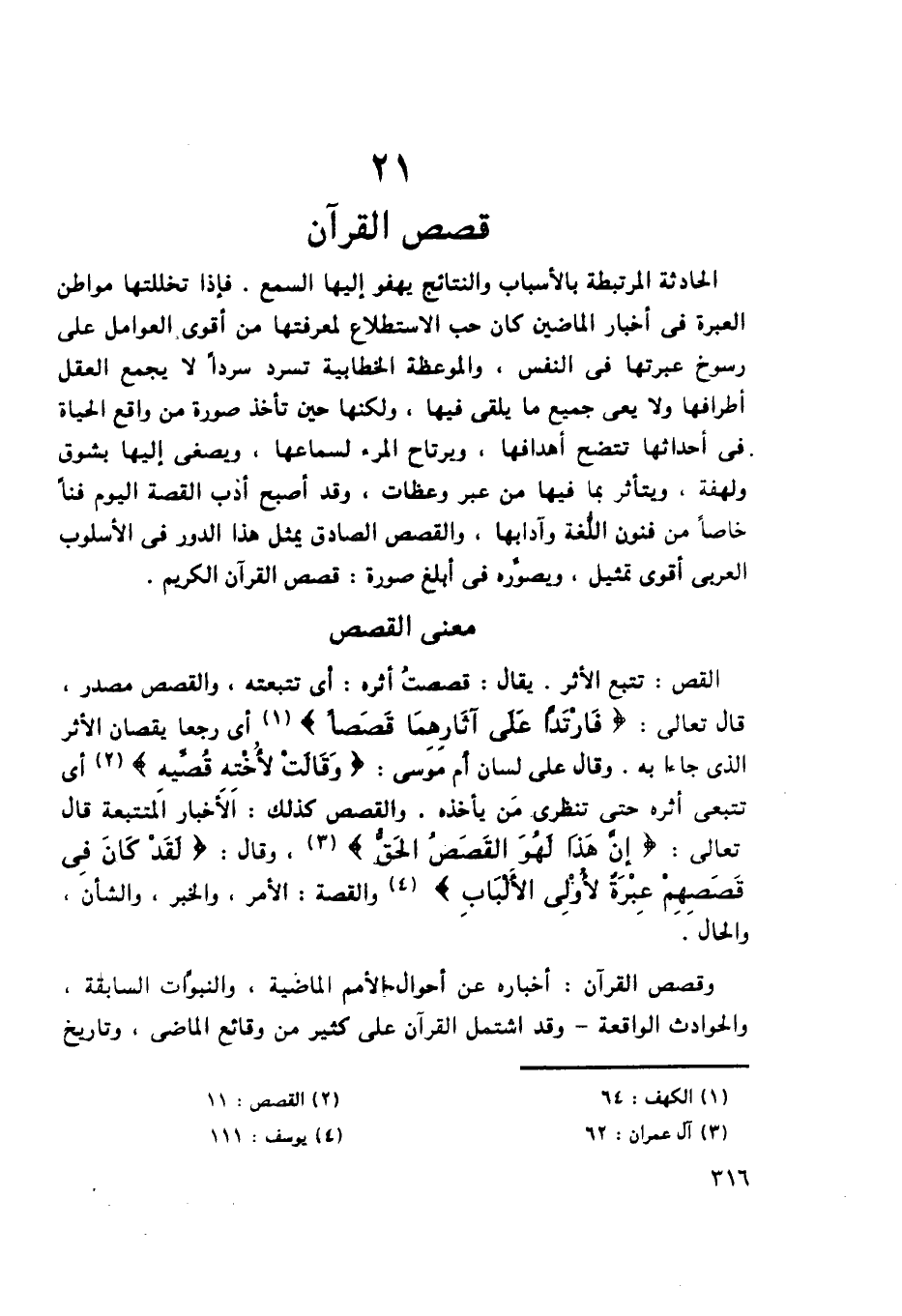 وقصص القرآن: أخباره عن أحوال الأمم الماضية، والنبوات السابقة، والحوادث الواقعة - وقد اشتمل القرآن على كثير من وقائع الماضي، وتاريخ
