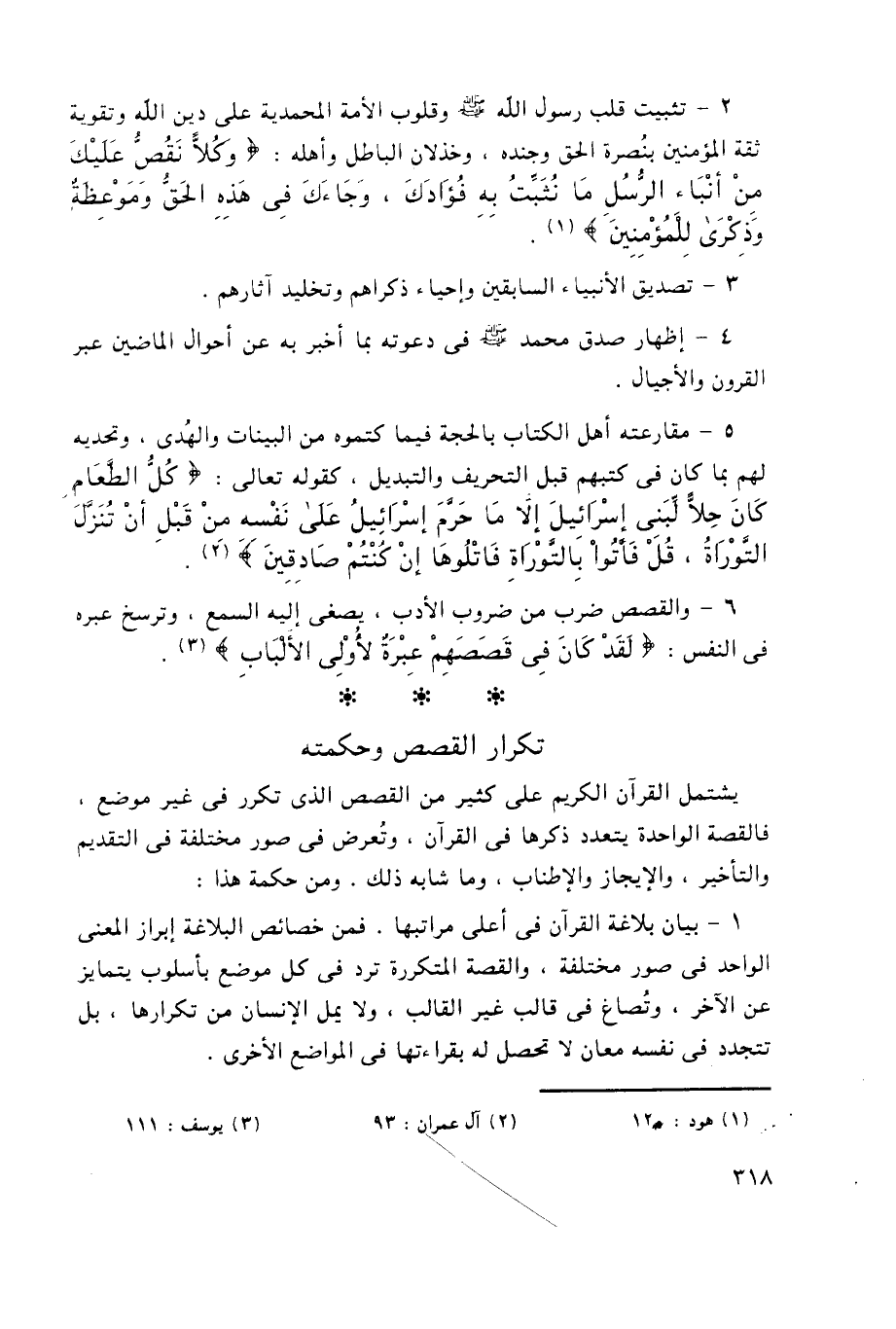 يشتمل القرآن الكريم على كثير من القصص الذي تكرر في غير موضع، فالقصة الواحدة يتعدد ذكرها في القرآن , وتُعرض في صور مختلفة في التقديم والتأخير، والإيجاز والإطناب، وما شابه ذلك. ومن حكمة هذا: