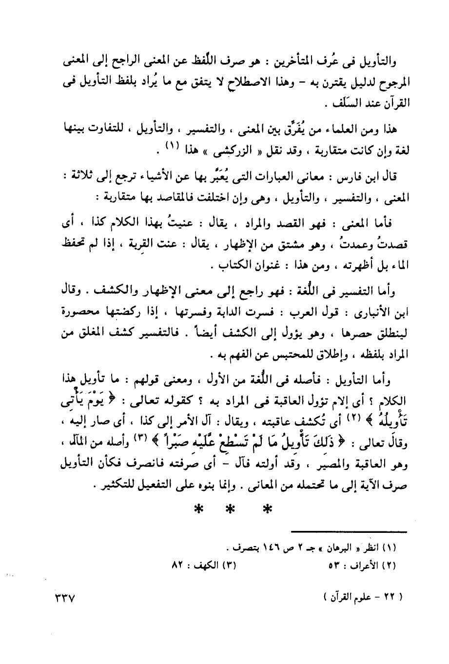 هذا ومن العلماء من يفرق بين المعنى، والتفسير، والتأويل، للتفاوت بينها لغة وإن كانت متقاربة، وقد نقل "الزركشي" هذا1.