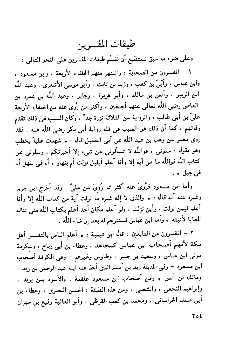 وعلى ضوء ما سبق نستطيع أن نقسم طبقات المفسرين على النحو التالي: