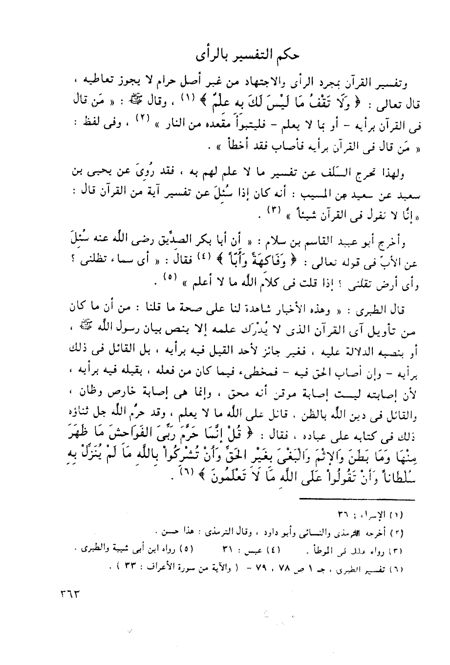 6 تفسير الطبري، جـ1 ص78، 79 – [والآية من سورة الأعراف: 33] .