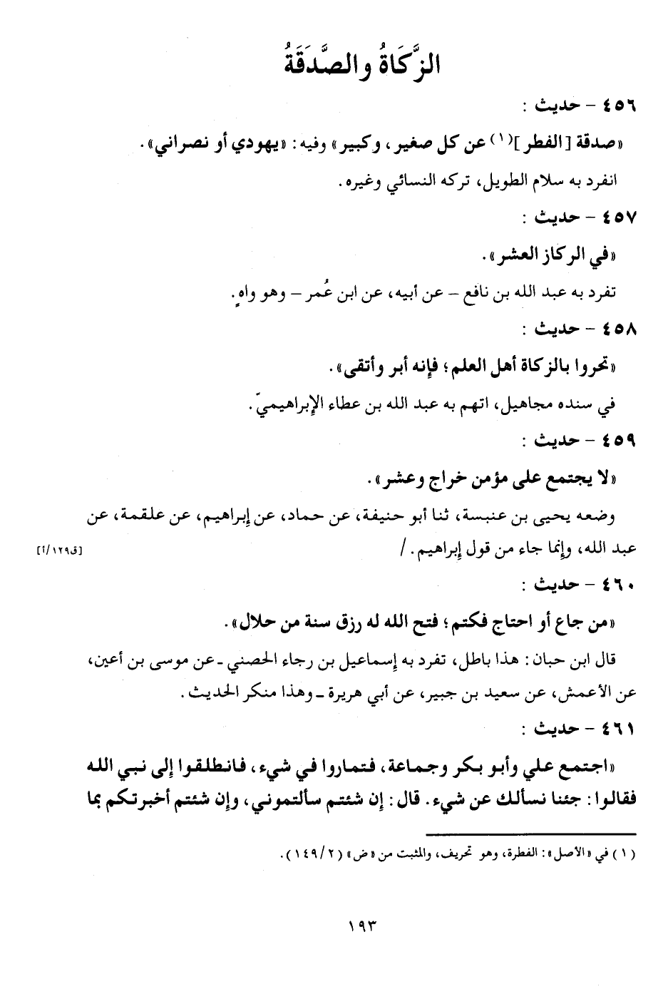 456 - حَدِيث: " صَدَقَة [الْفطر] عَن كل صَغِير، وكبير " وَفِيه: " يَهُودِيّ أَو نَصْرَانِيّ ". انْفَرد بِهِ سَلام الطَّوِيل، تَركه النَّسَائِيّ وَغَيره.