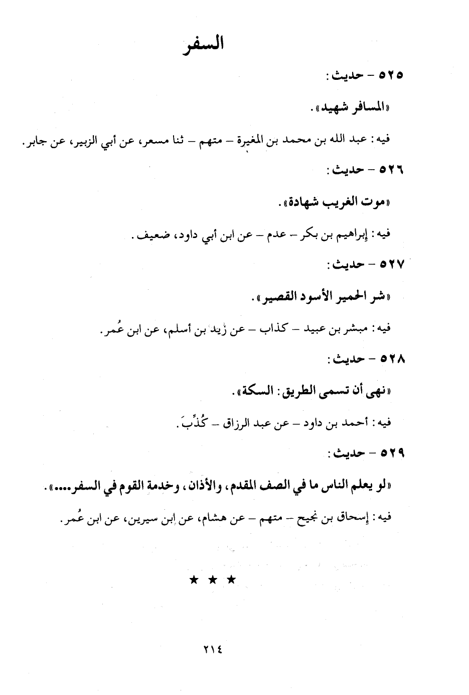 525 - حَدِيث: " الْمُسَافِر شَهِيد ". فِيهِ: عبد الله بن مُحَمَّد بن الْمُغيرَة - مُتَّهم - ثَنَا مسعر، عَن أ [ي الزبير، عَن جَابر.
