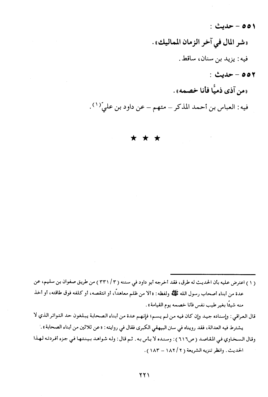 552 - حَدِيث: " من آذَى ذِمِّيا فَأَنا خَصمه ". فِيهِ الْعَبَّاس بن أَحْمد الْمُذكر - مُتَّهم - عَن دَاوُد بن عَليّ.