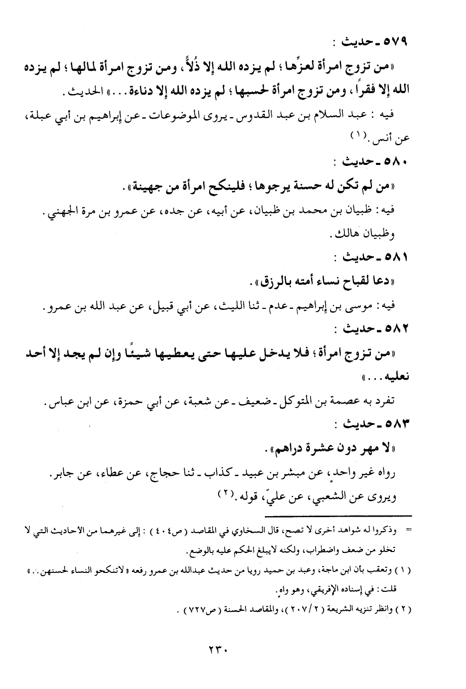 579 - حَدِيث: " من تزوج امْرَأَة لعزها؛ لم يزده الله إِلَّا ذلاً، وَمن تزوج امْرَأَة لمالها؛ لم يزده الله إِلَّا فقرا، وَمن تزوج امْرَأَة لحسبها؛ لم يزده الله إِلَّا دناءة ... " الحَدِيث. فِيهِ: عبد السَّلَام بن عبد القدوس - يرْوى الموضوعات - عَن إِبْرَاهِيم بن أبي عبلة، عَن أنس.