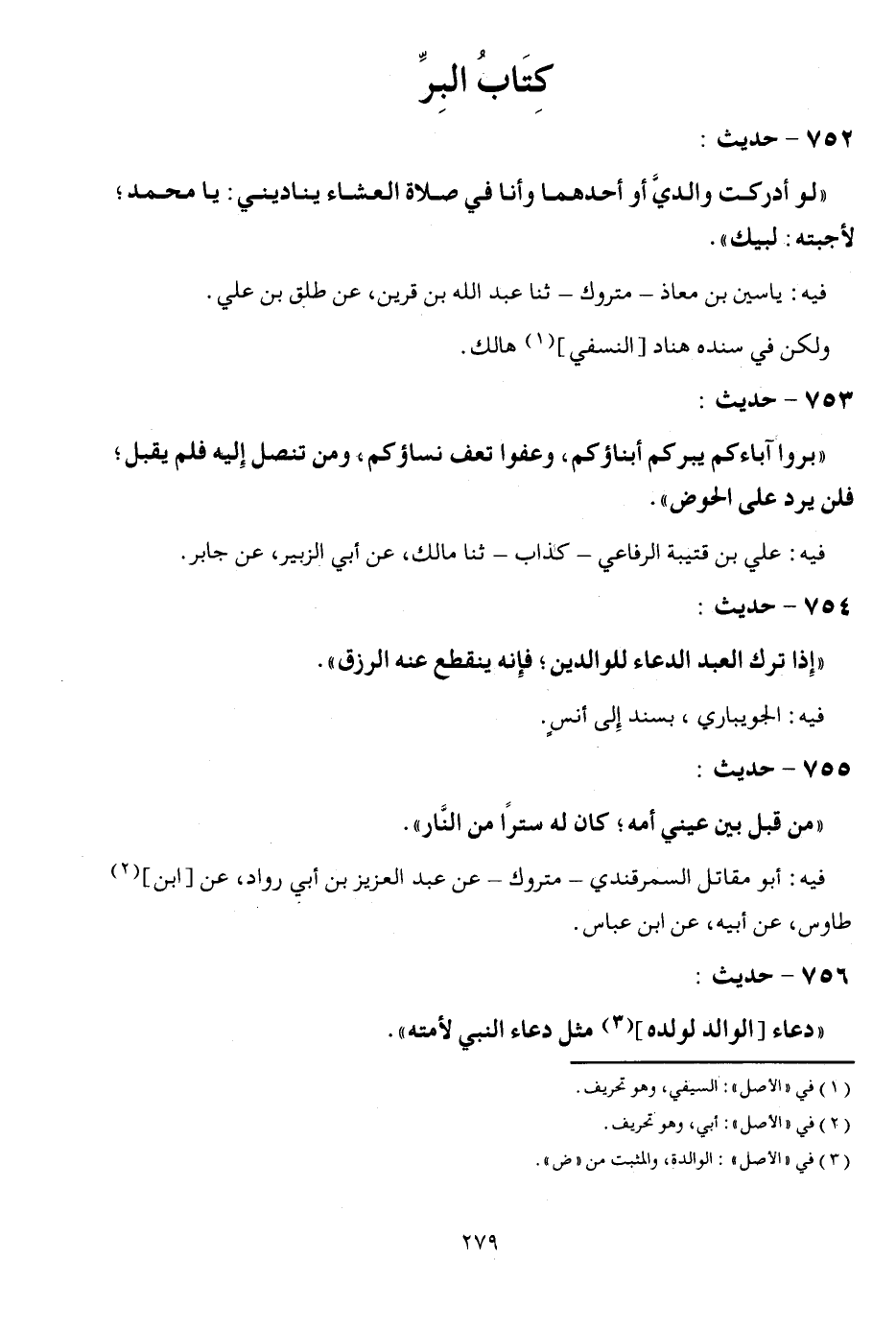 752 - حَدِيث: " لَو أدْركْت وَالِدي أَو أَحدهمَا وَأَنا فِي صَلَاة الْعشَاء يناديني " يَا مُحَمَّد؛ لأجبته لبيْك ". فِيهِ: ياسين بن معَاذ - مَتْرُوك - ثَنَا عبد الله بن قرين، عَن طلق بن عَليّ. وَلَكِن فِي سَنَده هناد [النَّسَفِيّ] هَالك.