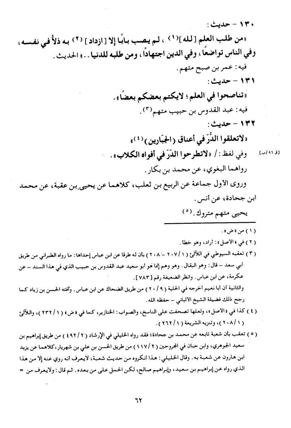 131 - حَدِيث: " تناصحوا فِي الْعلم؛ لَا يكتم بَعْضكُم بَعْضًا ". فِيهِ: عبد القدوس بن حبيب مُتَّهم.