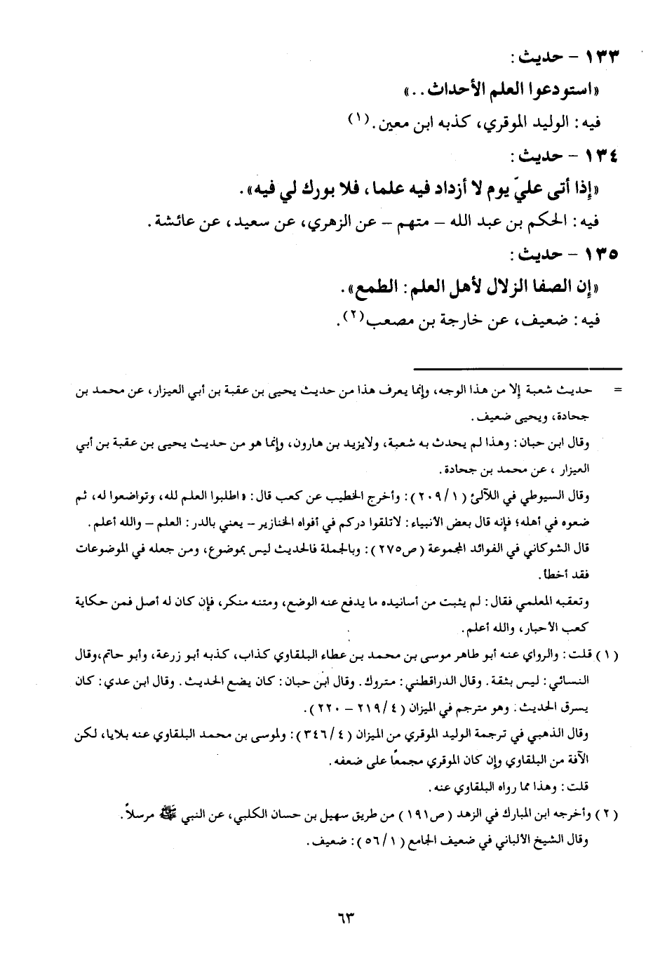 133 - حَدِيث: " استدعوا الْعلم الْأَحْدَاث ... ". فِيهِ: الْوَلِيد الموقري، كذبه ابْن معِين.