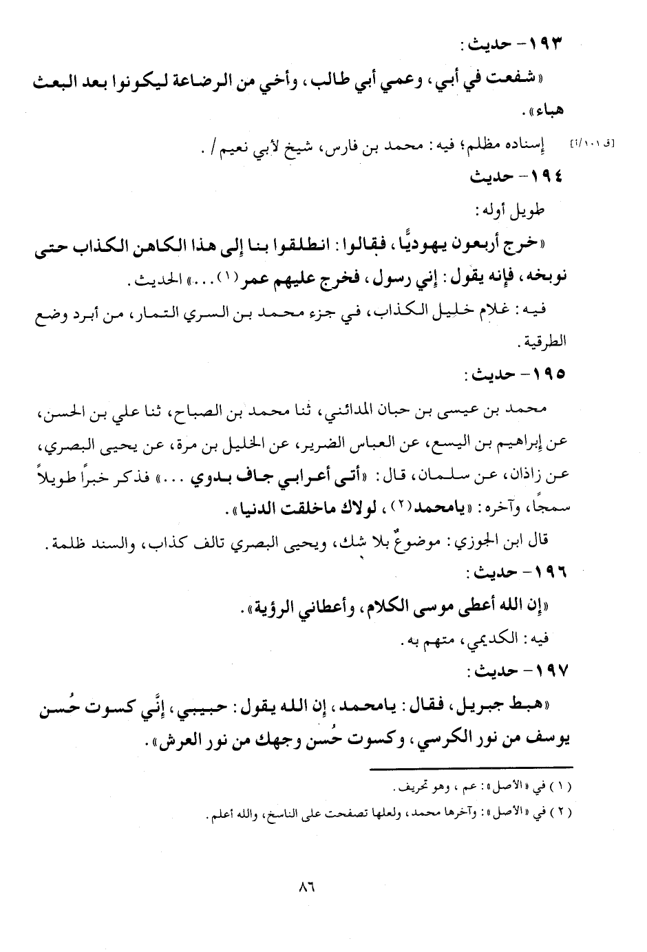 196 - حَدِيث: " إِن الله أعْطى مُوسَى الْكَلَام، وَأَعْطَانِي الرُّؤْيَة ". فِيهِ: الْكُدَيْمِي، مُتَّهم بِهِ.