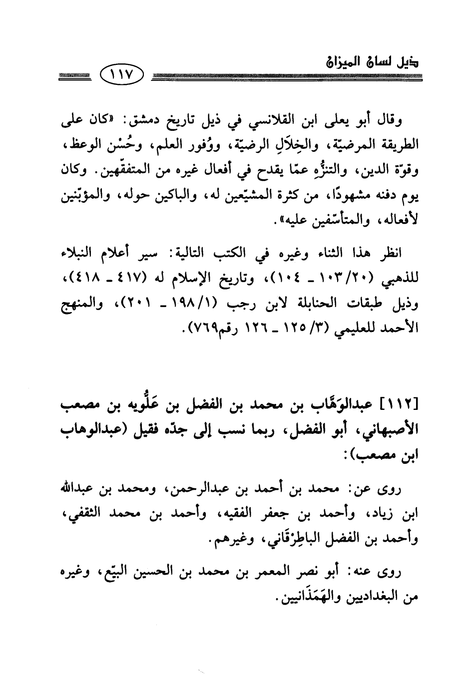 [112] عبد الوَهَّاب بن محمد بن الفضل بن عَلُّويه بن مصعب الأصبهاني، أبو الفضل، ربما نسب إلى جدّه فقيل (عبد الوهاب ابن مصعب):