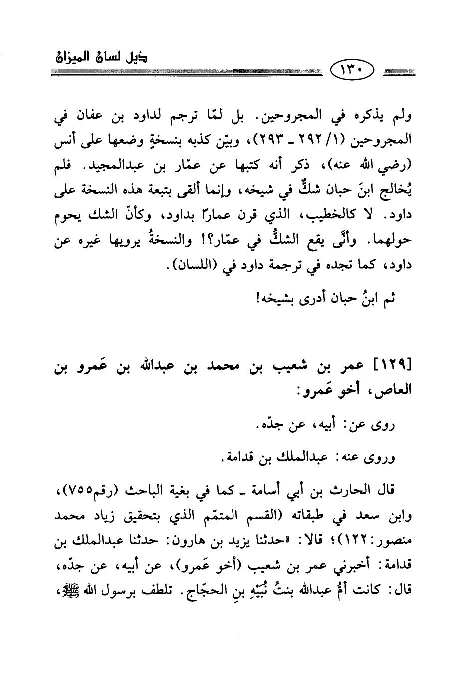 [129] عمر بن شعيب بن محمد بن عبد الله بن عَمرو بن العاص، أخو عَمرو: