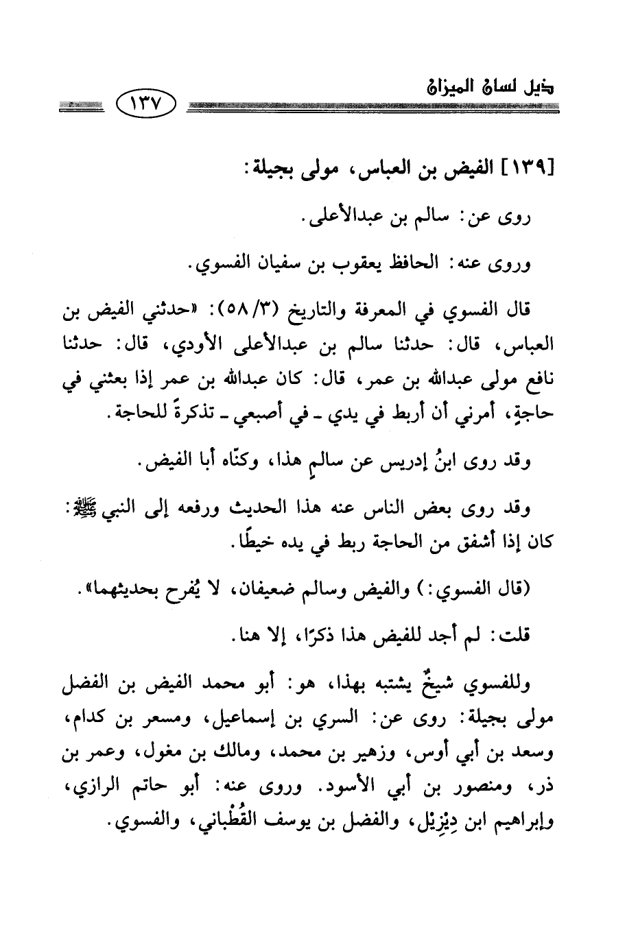 (قال الفسوي:) والفيض وسالم ضعيفان، لا يُفرح بحديثهما".