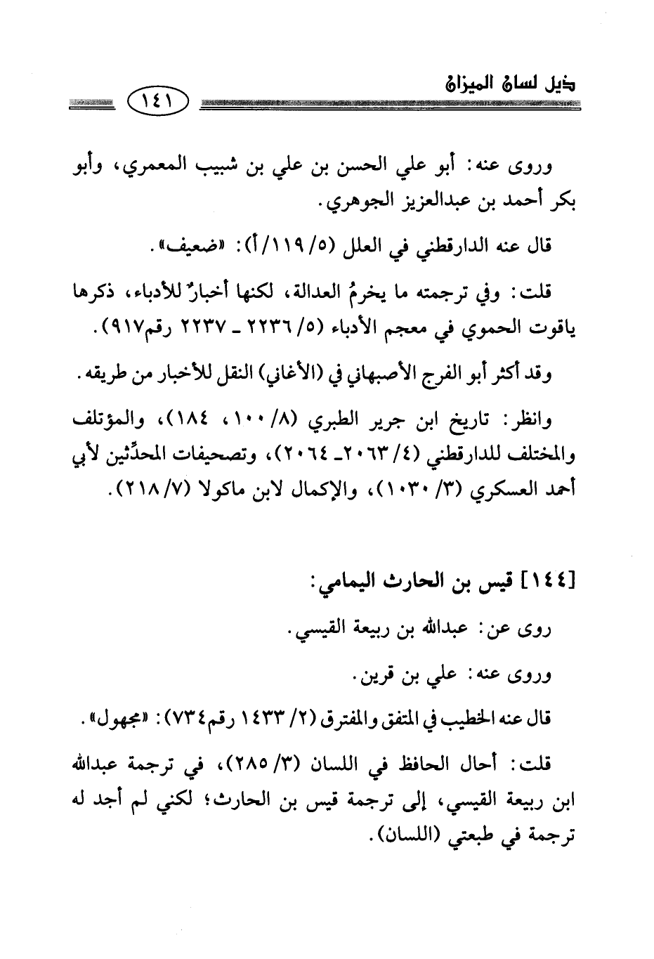 قلت: أحال الحافظ في اللسان (3/ 285)، في ترجمة عبد الله ابن ربيعة القيسي، إلى ترجمة قيس بن الحارث؛ لكني لم أجد له ترجمة في طبعتي (اللسان).