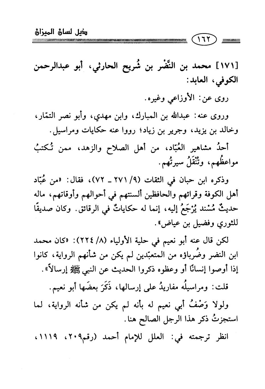 [171] محمَّد بن النَّضْر بن شُريح الحارثي، أبو عبد الرحمن الكوفي، العابد: