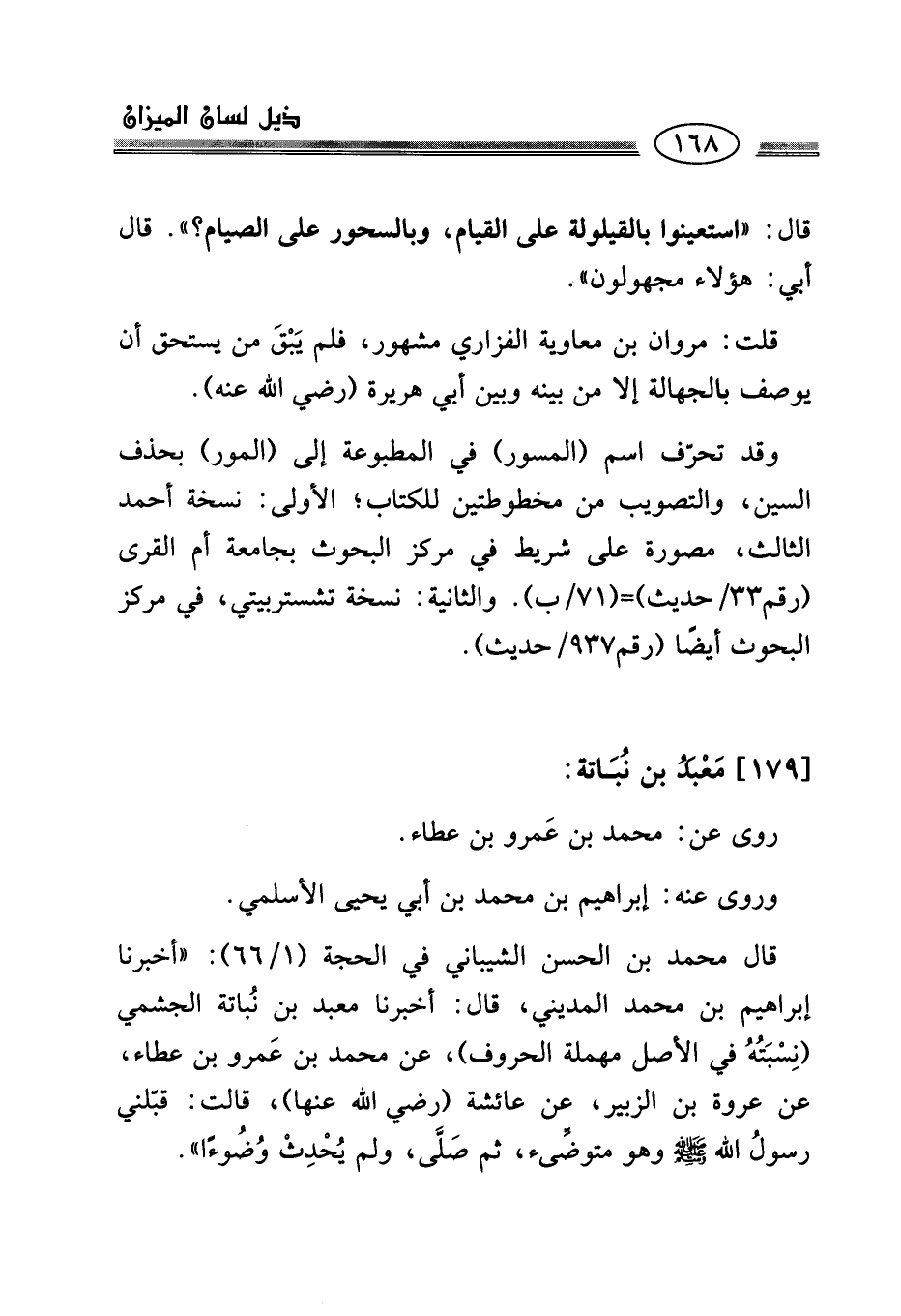 قال: "استعينوا بالقيلولة على القيام، وبالسحور على الصيام؟ ". قال أبي: هؤلاء مجهولون".
