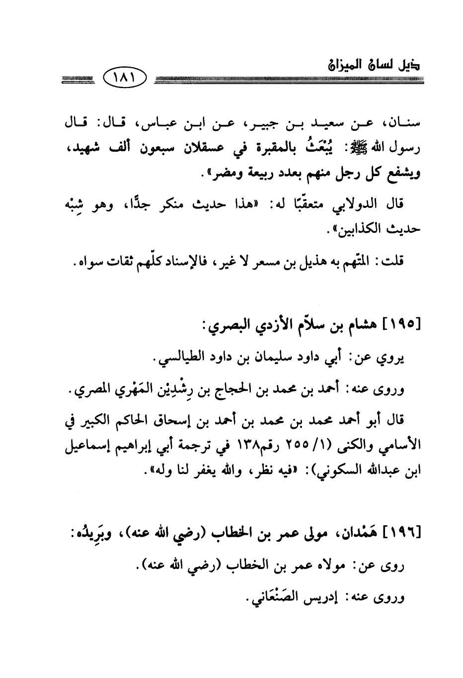 [196] هَمْدان، مولى عمر بن الخطاب (رضي الله عنه)، وبَرِيدُه: روى عن: مولاه عمر بن الخطاب (رضي الله عنه):