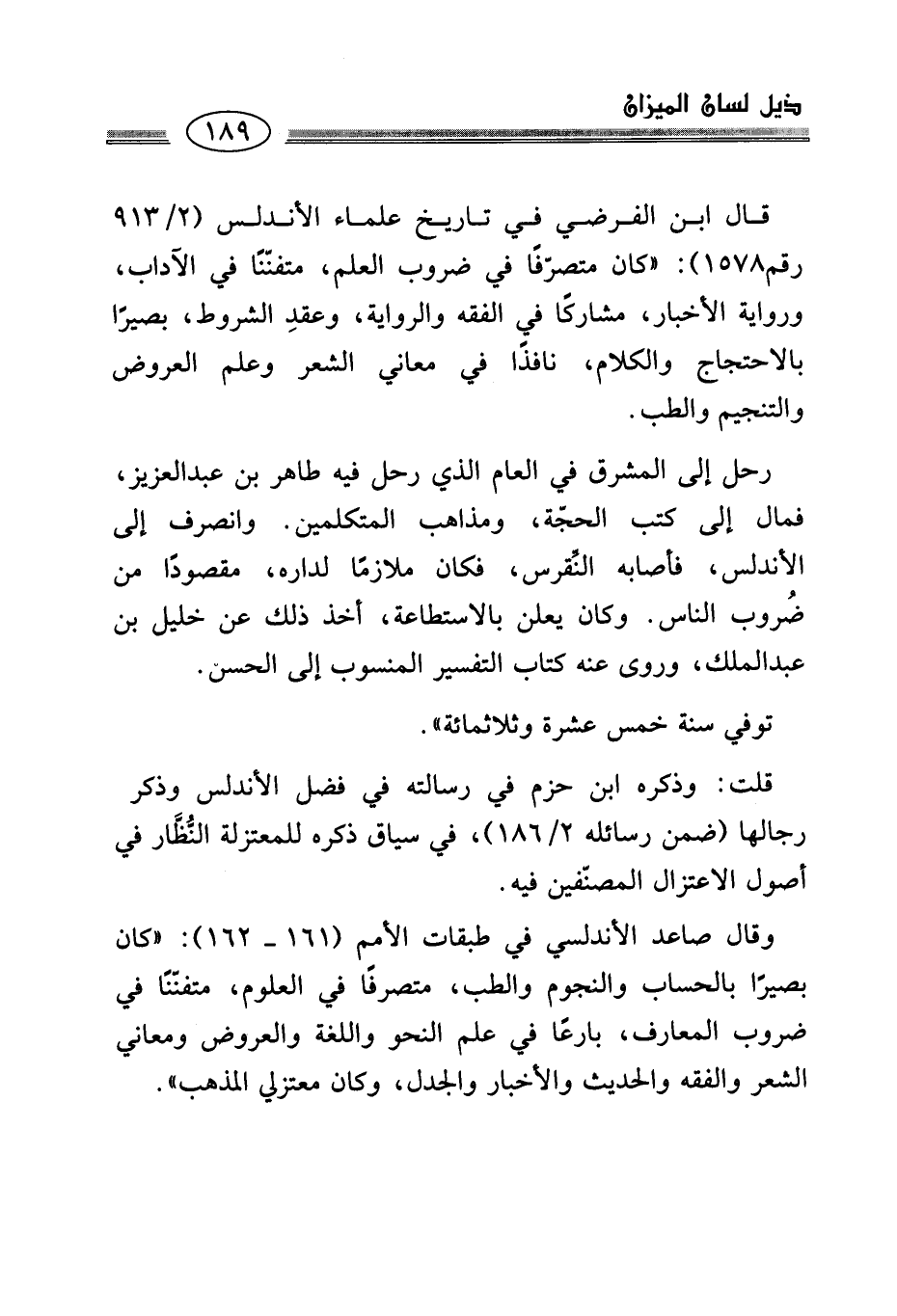 قلت: وذكره ابن حزم في رسالته في فضل الأندلس وذكر رجالها (ضمن رسائله 2/ 186)، في سياق ذكره للمعتزلة النُّظَّار في أصول الاعتزال المصنّفين فيه.